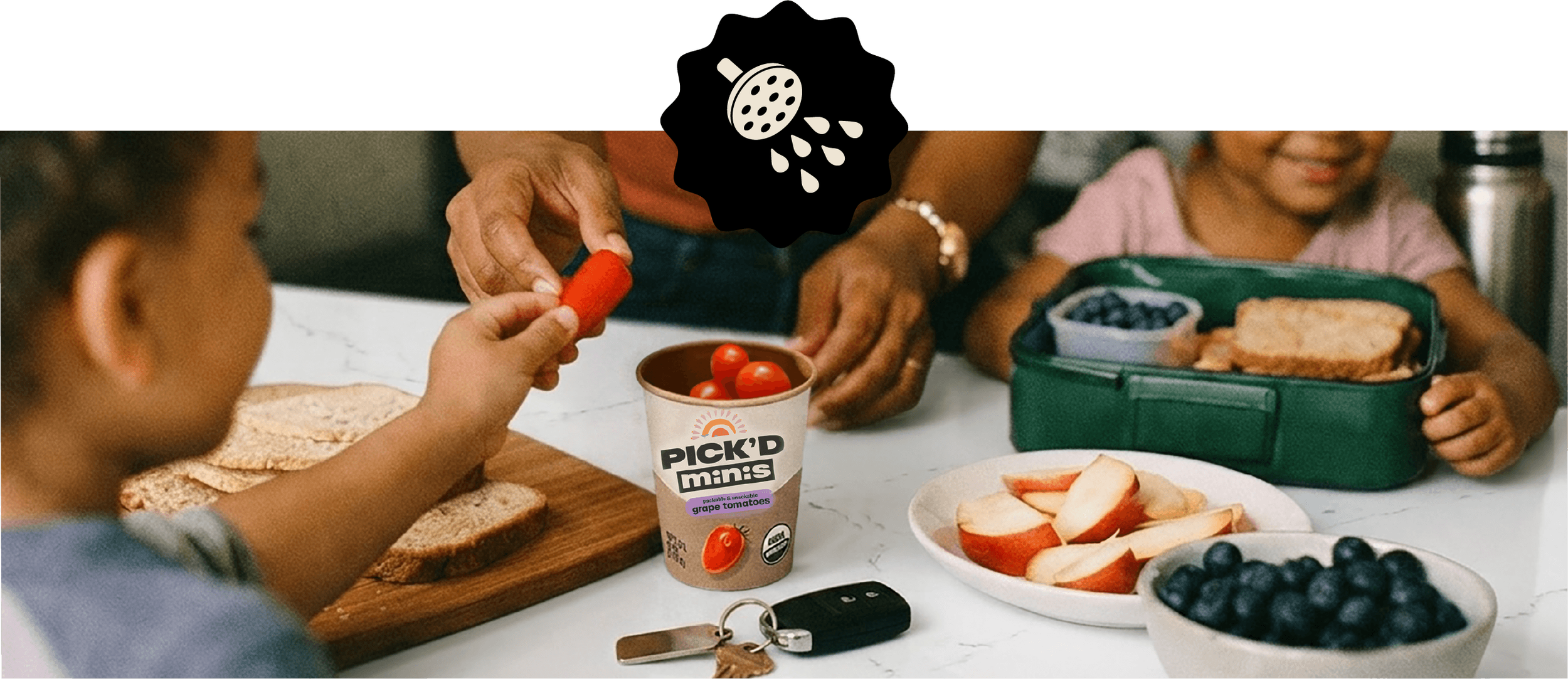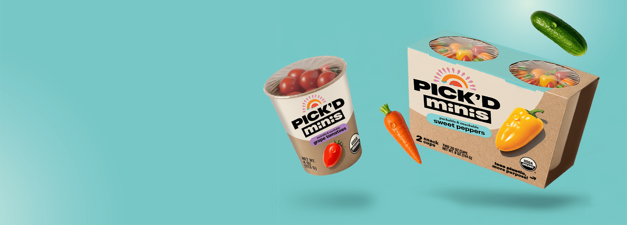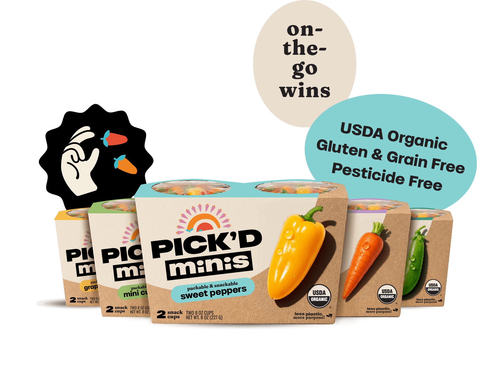 After 10 years tackling waste and freshness challenges in produce while juggling a busy family life, we saw firsthand the need for more convenient, wholesome snack options. We created Pick’d Minis to bring out produce expertise to veggie snacking and help fill a clear gap in the produce aisle.